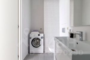 Санузел с душевой кабиной и стиральной машиной.