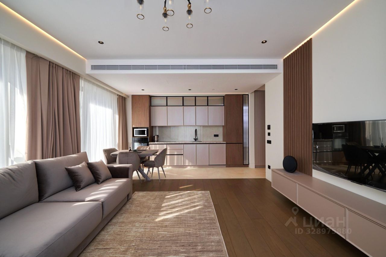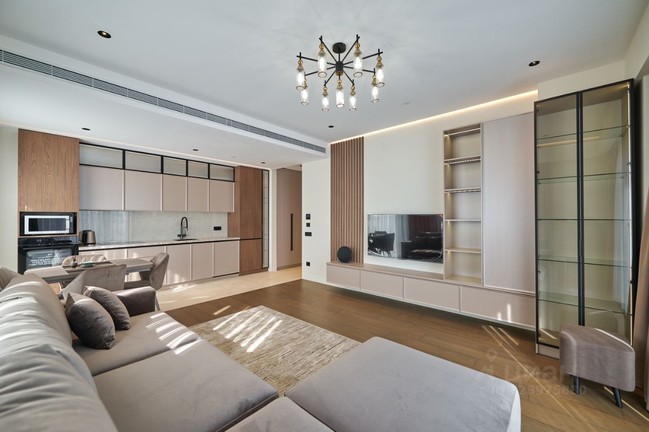 Квартира меблирована и укомплектована всей необходимой техникой: посудомоечная и стиральная машины, варочная панель и духовой шкаф, СВЧ-печь, телевизор, холодильник, приточно-вытяжная система вентиляции и кондиционирования.