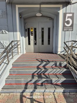 Лифт пассажирский и грузовой, пандусы на входе и в подъезде, есть мусоропровод.