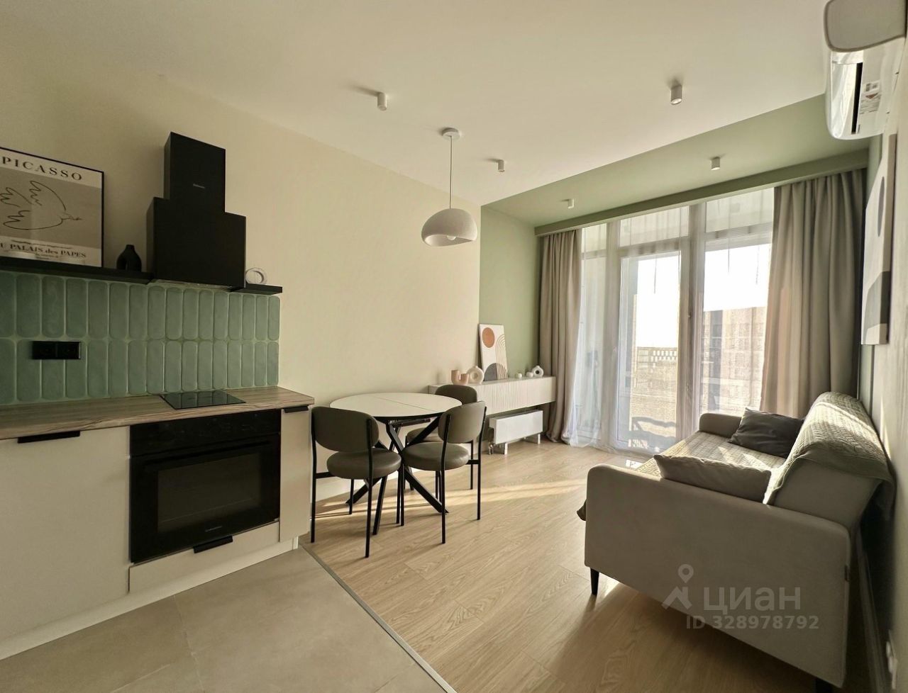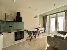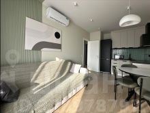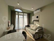 В квартире есть всё необходимое для комфортного проживания: современная мебель в комнате, а также полный комплект техники — кондиционер, холодильник, посудомоечная и стиральная машины, телевизор. Санузел совмещённый, оборудован ванной, что добавляет удобства. На кухне достаточно места для приготовления любимых блюд.