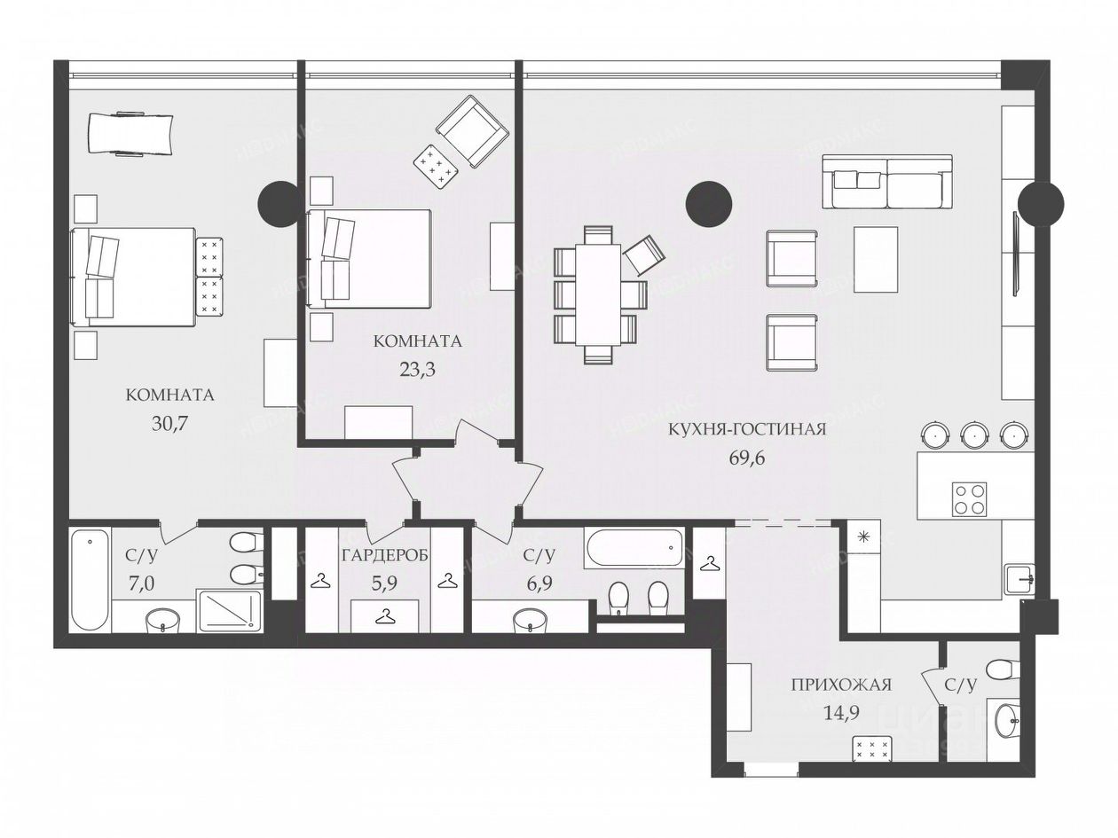 — Кухня-гостиная с зоной для приема гостей;