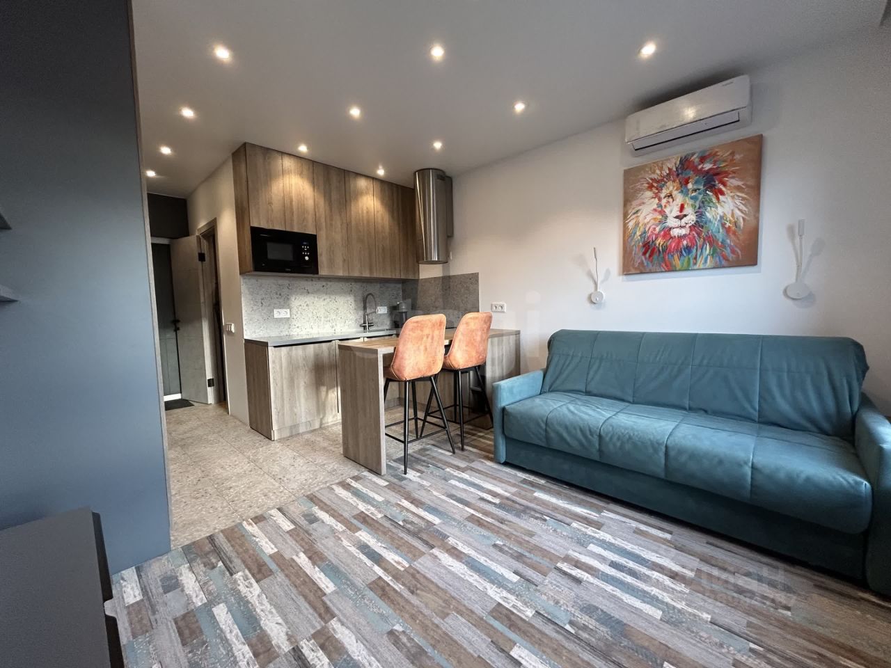 Квартира полностью укомплектована всей необходимой бытовой техникой, включая индукционную плиту, стиральную машину, кофемашину, кондиционер и водонагреватель.