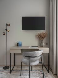 стирально/сушильная машина Bosch, фильтр питьевой воды c обратным осмосом встроенная микроволновая печь, большой встроенный холодильник с морозильной камерой Kuppersberg, вытяжка Kuppersberg. В спальне имеется кровать по индивидуальному заказу размером 1,60 x 2,00 метра с ортопедическим матрасом с двумя степенями жесткости, вместительные шкафы с антресолями и подсветкой изнутри, кресла, диваны, рабочий стол и другое. Радиаторы отопления изготовлены по индивидуальному заказу и имеют регулировку - Oventrop, что позволяет создать в помещении свой микроклимат. Для предотвращения ущерба в части протечек воды, вся квартира снабжена датчиками протечки воды - Oventrop. В каждой комнате установлены SMART/телевизоры. На случай сезонного отключения холодной воды предусмотрен проточный водонагреватель. Санузел отделан итальянским керамогранитом, установлена итальянская сантехника, ванна, унитаз, гигиенический душ, тропический душ, зеркало с подцветкой, часами и подогревом, электрический полотенцесушитель. В спальне имеется панорамное остекление (французский балкон).