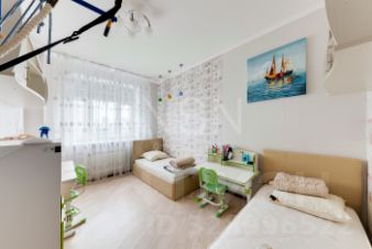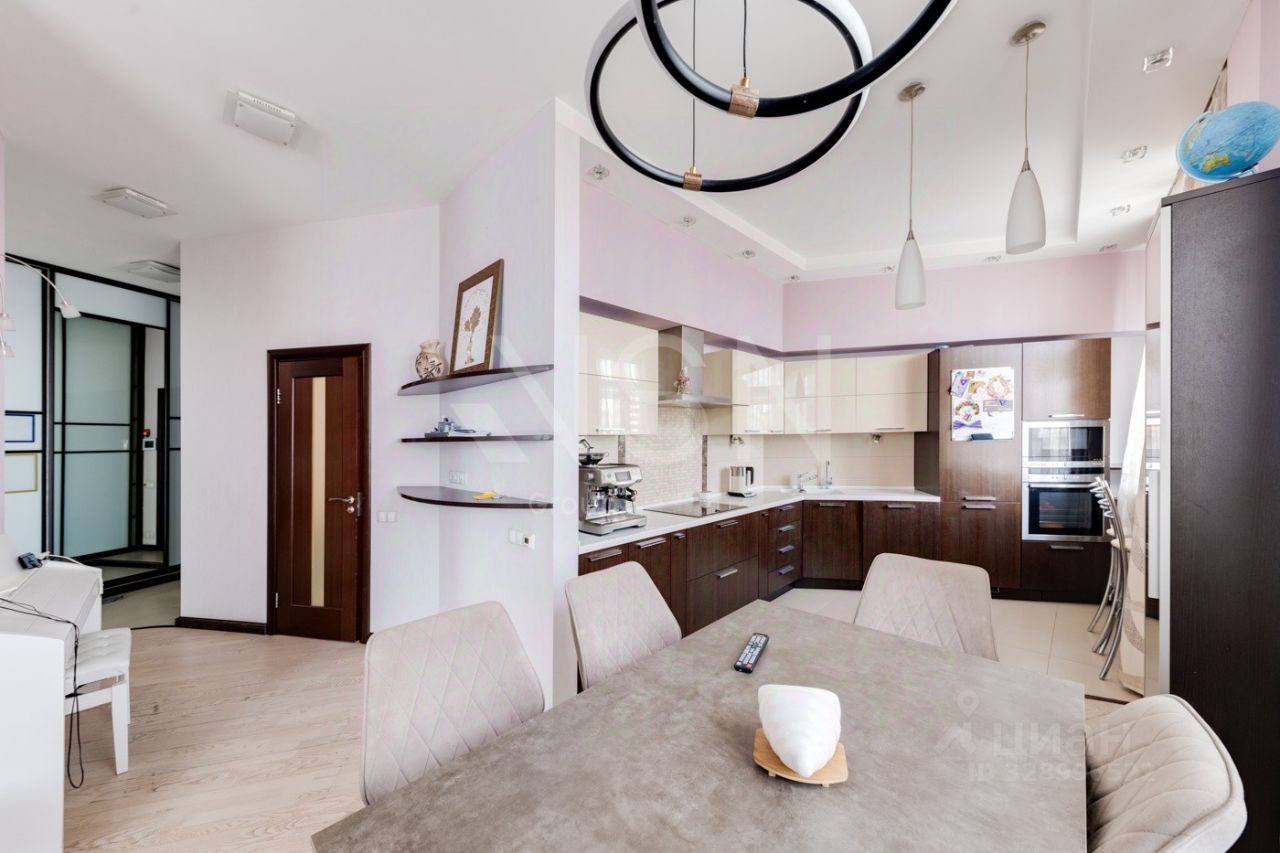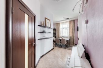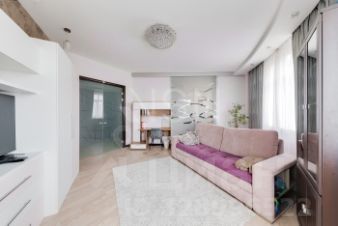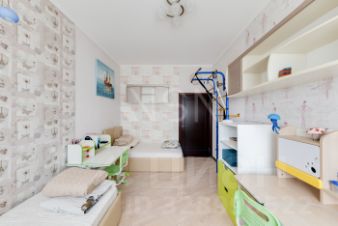 Удобная планировка - кухня, совмещенная с гостиной (есть стеклянная перегородка), спальня и детская комната. Два санузла, есть балкон и гардеробная.