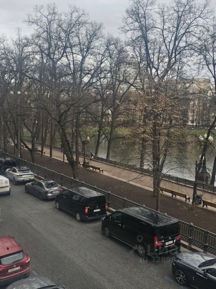 Окна в квартире смотрят на Патриаршие пруды, Балкон с видом на пруд, где можно наслаждаться утренним кофе.