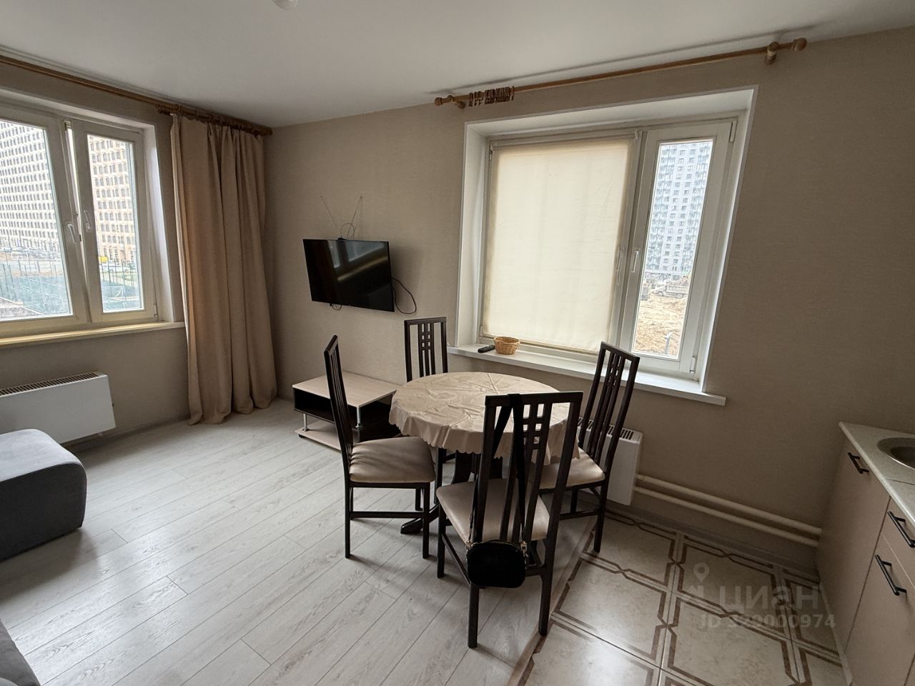 Кухня просторная, площадью 16 м², оснащена необходимой бытовой техникой, включая холодильник и микроволновую печь. Из окон открывается приятный вид на двор с детской площадкой.