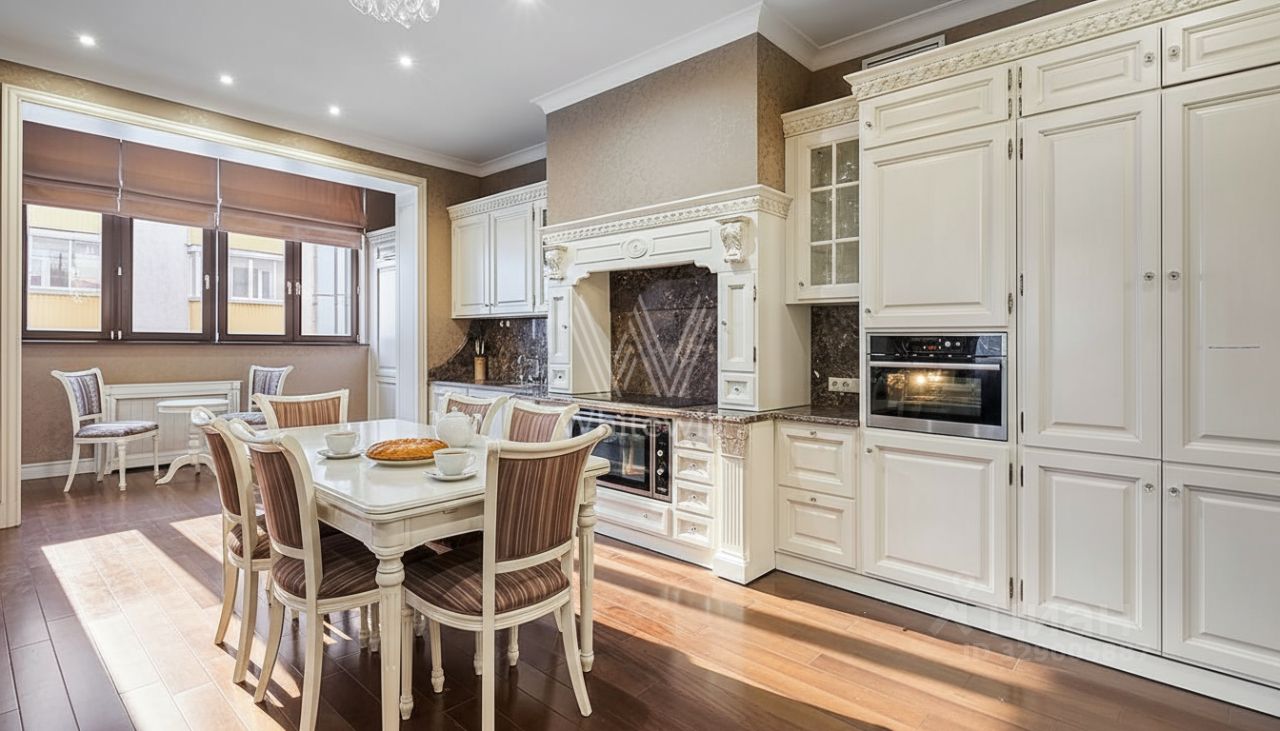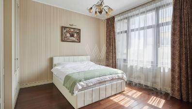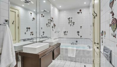 Планировка: гостиная-кухня-столовая, 4 спальни, две ванные комнаты, гостевой санузел, постирочная комната, холл. Квартира полностью укомплектована мебелью и бытовой техникой, установлены встроенные шкафы. Окна выходят на три стороны света. 2 машиноместа в подземном паркинге входят в стоимость.