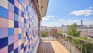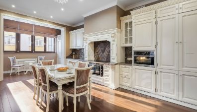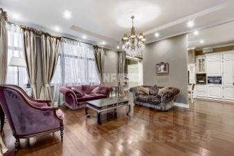 Бонус партнёрам 50%. Видовая квартира с 4-мя спальнями и террасой общей площадью 220 м² в доме на Озерковской набережной напротив острова Балчуг. Ремонт выполнен в классическом стиле, в отделке использовано натуральное дерево. С просторной террасы открывается вид на город, установлен навес "маркиз".