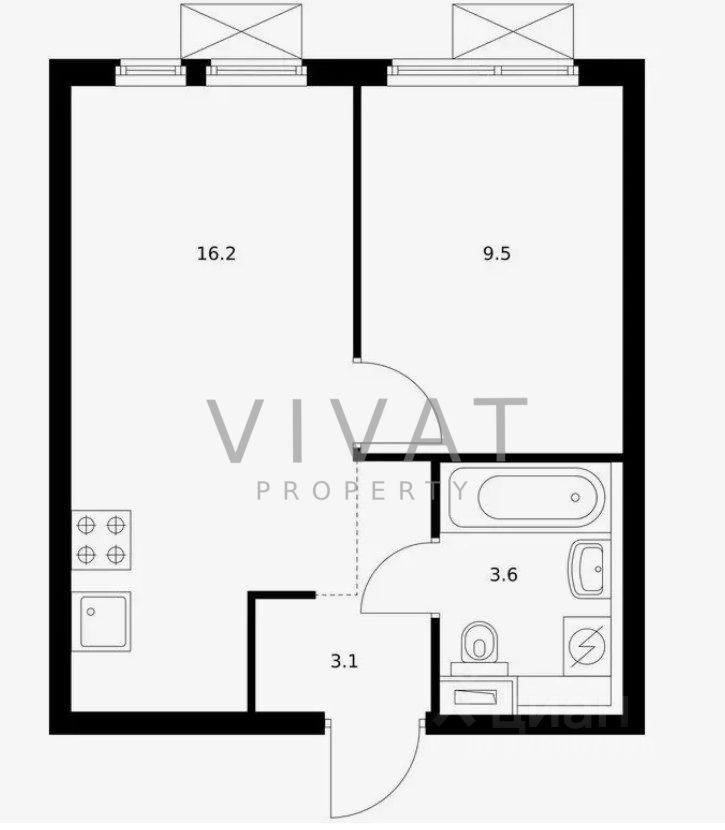 Планировка: кухня-гостиная, спальня, ванная комната.