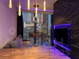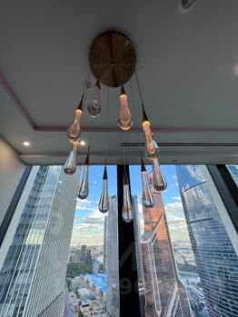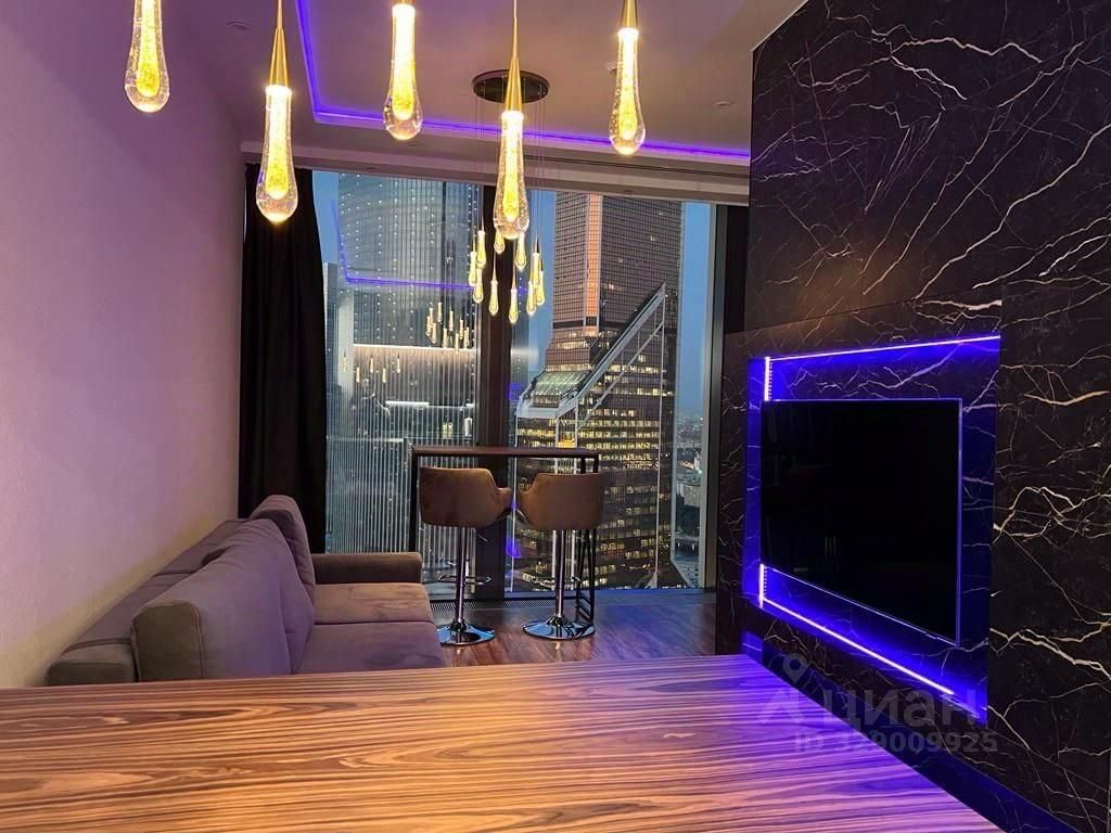 Общая площадь апартаментов — 55 кв. м, жилая — 39 кв. м. Апартаменты расположены на 34-м этаже 63-этажного дома, а из панорамных окон открывается потрясающий вид на башни делового центра Москва-Сити.