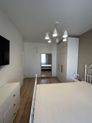 Квартира оформлена с качественным евроремонтом и полностью меблирована. Просторная кухня-гостиная оборудована всей необходимой техникой: холодильником, посудомоечной машиной и др.. В квартире раздельный санузел.