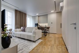 Предлагаем вашему вниманию аренду стильной евротрешки в новом доме рядом с метро Аминьевская и Мичуринский проспект. Квартира на 8-м этаже 41-этажного дома, с общей площадью 63 кв. м и это лучшая планировка евротрешки в доме с большой и просторная кухня-гостиная занимает почти 30 кв. м. Высокие потолки 3.1м.