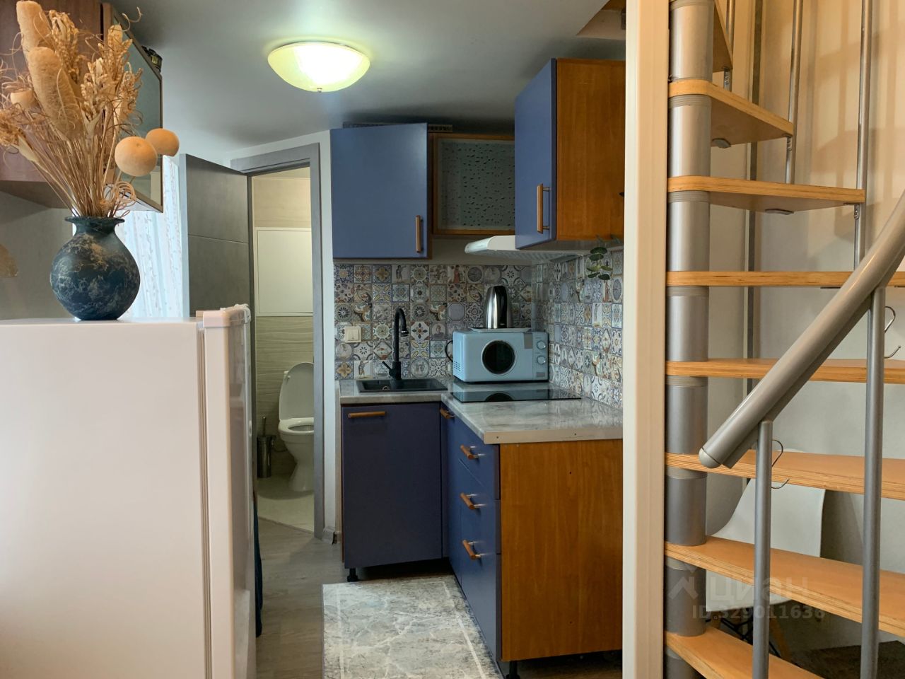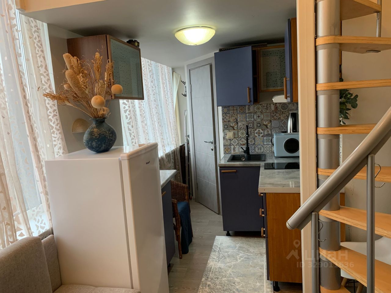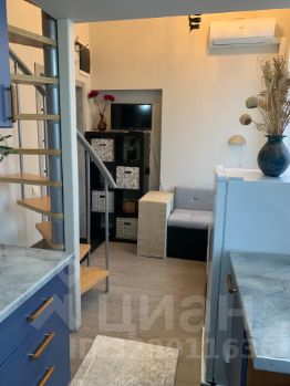 Сдается уютная двухуровневая студия-мини в стильном дизайне (13 + 9 м.). Потолки 4,2 м. Панорамные окна (на внутреннюю сторону). Максимально всё спланировано для комфортного проживания. Преимущественно для 1-го человека. Кухонная зона полностью оборудована: электроплита стеклокерамика (две конфорки), холодильник (новый), печь-свч, пылесос, стиральная машина. Мини-гостиная с диванчиком (раскладной), столики, стулья, и пр. Телевизор небольшой есть. Санузел (совмещенный), душевая кабинка. Кондиционер установлен. Интернет проведен (роутер). Спальня на втором уровне (также полностью оборудована). Этаж 6-ой (лифт). Вход в здание по коду. Видеонаблюдение. Охрана. От метро две остановки. На 1-ом этаже с улицы, в доме расположен сетевой магазин Магнит 24. Рассматриваем жильцов аккуратных, ответственных, платежеспособных. Хороший собственник. Спокойные соседи. Вам всё понравится. Депозит. Свет и вода по счетчикам. ДЛИТЕЛЬНЫЙ СРОК