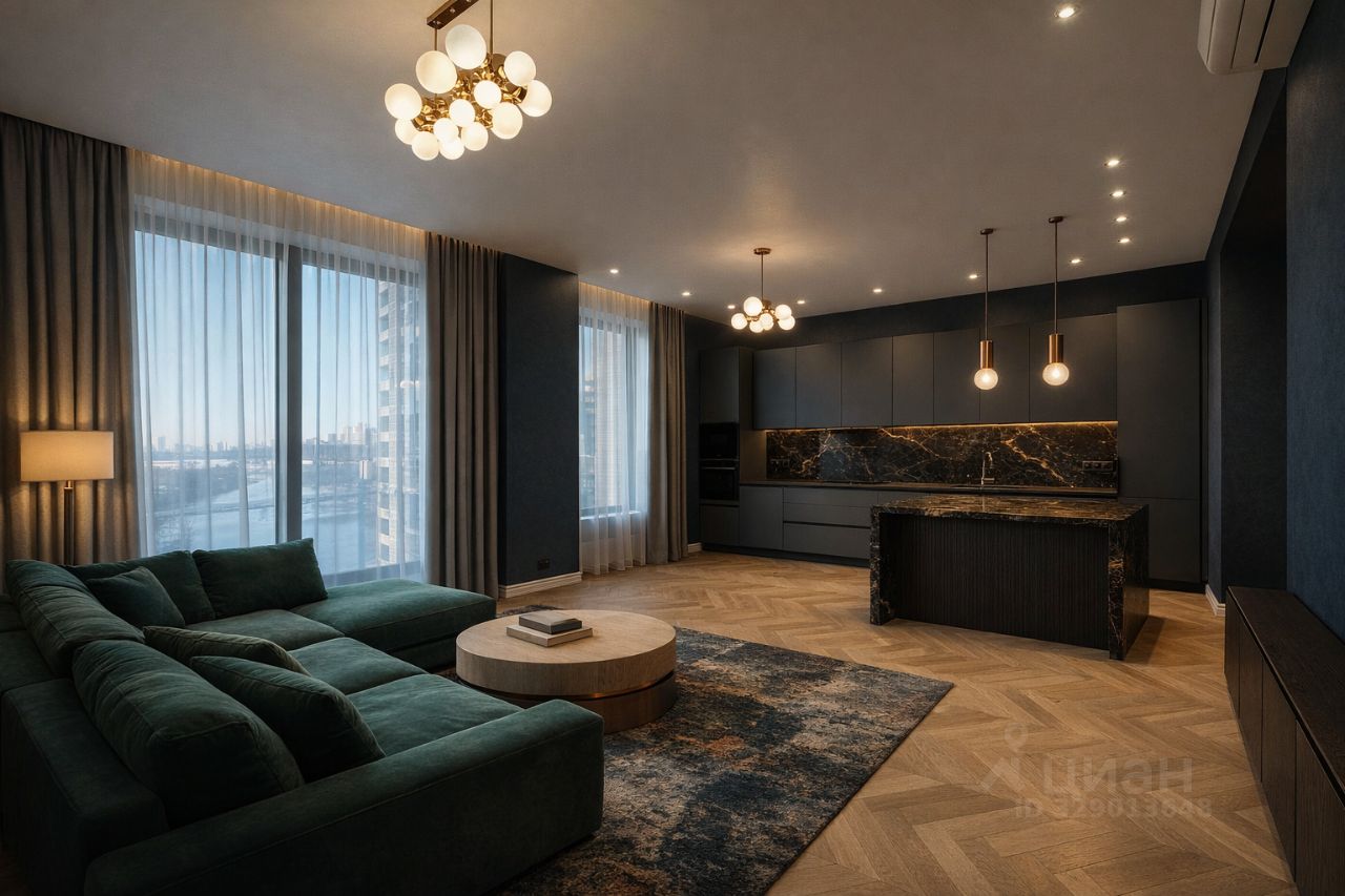 Мебель и техника: Квартира полностью укомплектована дорогой мебелью и встроенной техникой от ведущих брендов (холодильник, посудомоечная машина, духовой шкаф, варочная панель, стиральная и сушильная машины).
