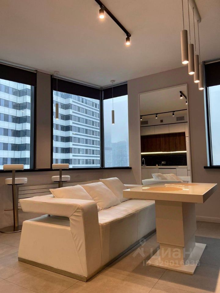 Квартира расположена на 45м этаже современного небоскрёба, оборудованного четырьмя скоростными лифтами и имеет завораживающие открыточные виды за горизонт на три стороны света, где как на ладони простирается Парк победы, Воробьёвы горы, башни Москва-Сити и Москва-река. На этаже располагаются всего четыре квартиры, соседи тихие дружелюбные люди, ремонты у всех давно закончены. Представленная квартира включает в себя мастер-спальню, гостиную жилую зону с двуспальным раскладным диваном, кухню-столовую с удобными диванной и барной зонами, функциональный санузел. Всё необходимое для жизни и быта в квартире имеется, заезжай и живи. Комнаты обставлены премиальной мебелью от ведущих итальянских фабрик SMANIA(it), FENDI(it), IDР(it), FLORENCE COLLECTIONS(it), PEDRALI(it), CALLIGARIS(it), IDEAL LUX(it), ALTACOM(it), EPOCA(it), а так же имеется все необходимое бытовое оборудование, европейская сантехника(теплые полы в прихожей, кухне, ванной, шумоизоляция).