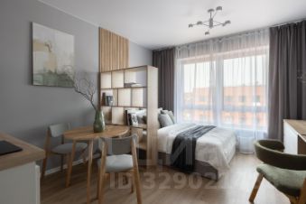 Студия для одного человека на долгосрочный период. Дизайнерский ремонт, вся необходимая техника: встроенный холодильник, варочная панель, помудомойка, вытяжка, кандиционер, стиральная машина с функцией сушки. До метро 2 минуты.