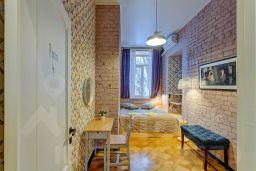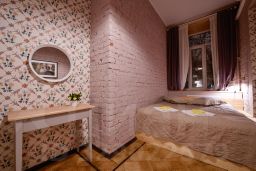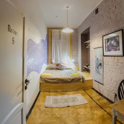 Отдельный номер с общей ванной комнатой. Дизайнерский интерьер, большая двуспальная кровать, оборудован кондиционером. Также есть стол, стул, зеркало и место для хранения вещей. Два комплекта полотенец включены в стоимость проживания. Wi-Fi доступен на всей территории хостела.