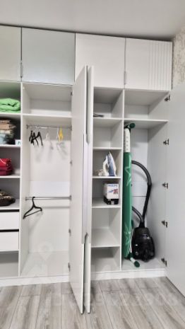 В основной комнате большой распашной шкаф. Есть кондиционер, утюг, сушилка для белья, гладильная доска, пылесос, телевизор. Коллекционные обои, деревянный плинтус. Рядом с кроватью умные светильники с беспроводной зарядкой. Шумоизоляция во всю стену.