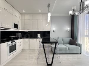 Просторная кухня-гостиная, в зоне кухни большое пространство для ваших кулинарных шедевров, вся техника встроена, посудомоечная машина, духовой шкаф, микроволновая печь, индукционная панель с вытяжкой и холодильник, установлены фильтры для питьевой воды, для кофеманов- кофемашина Jura