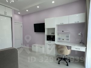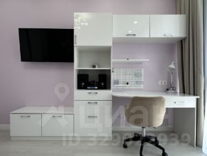 В спальне раскладной небольшой диван (готовы обсудить покупку кровати), телевизор, рабочее место и встроенной большой шкаф.