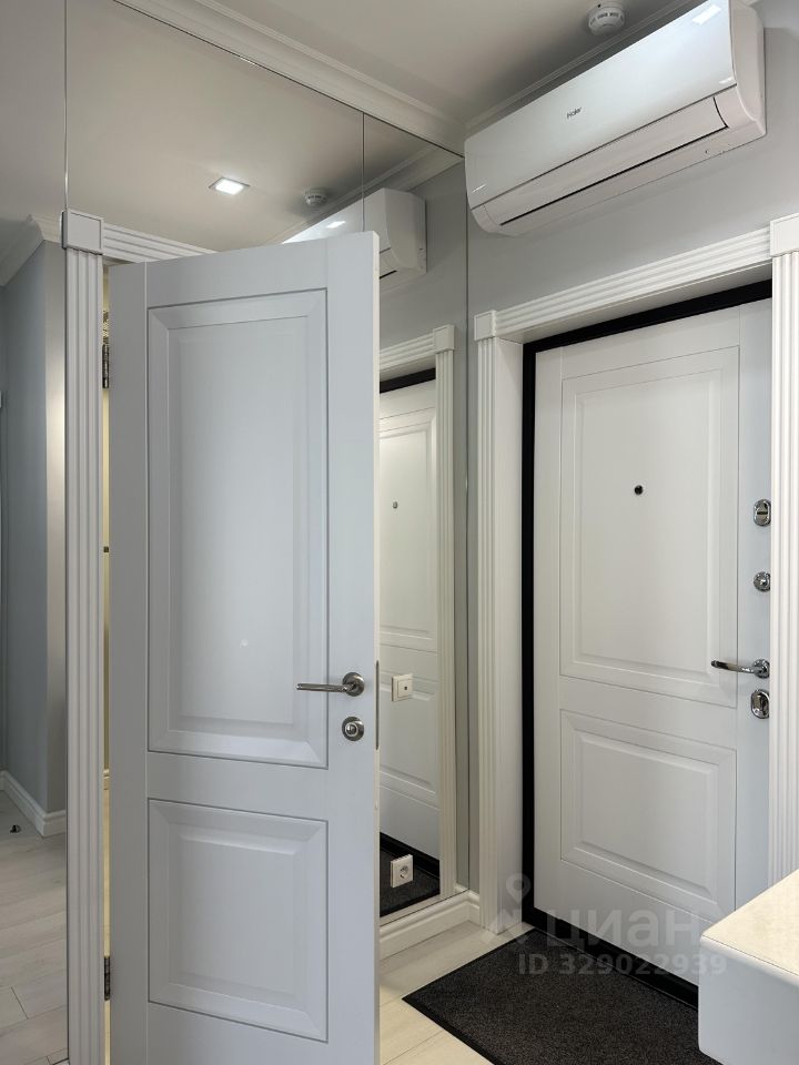 Зона прихожей с зеркалами, установлен кондиционер, далее