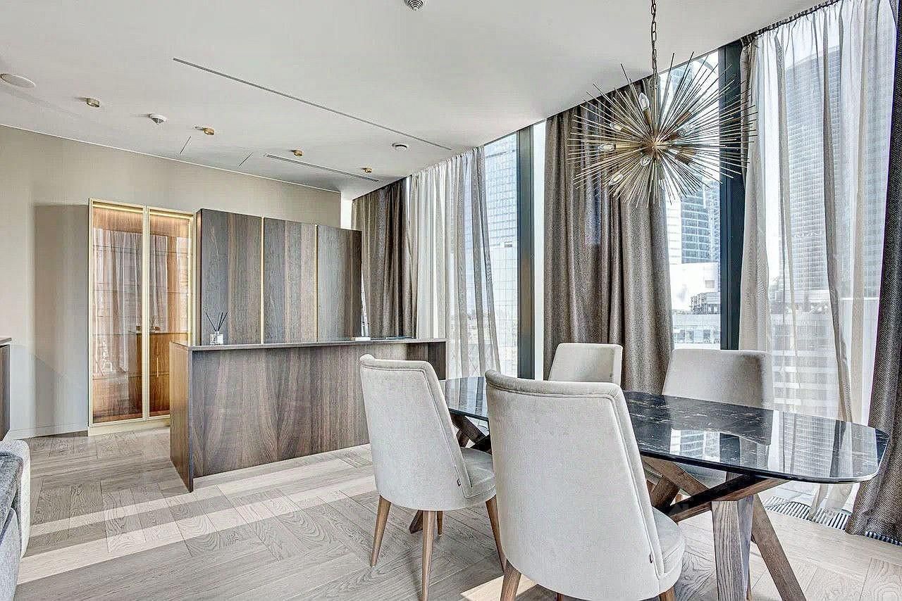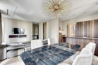 Современный интерьер, где продумана каждая деталь. Панорамные окна в пол делают город частью вашего декора.