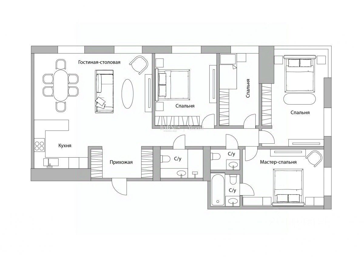 Светлая и тихая квартира для семейного проживания или ответственных компаний. Уникальная планировка с 4 полноценными изолированными спальнями.