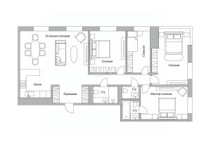 3 дополнительные спальни — для детей, кабинета или гостей.