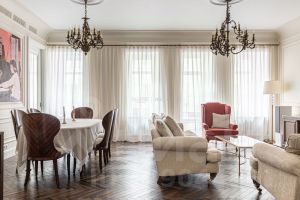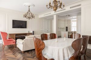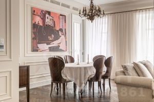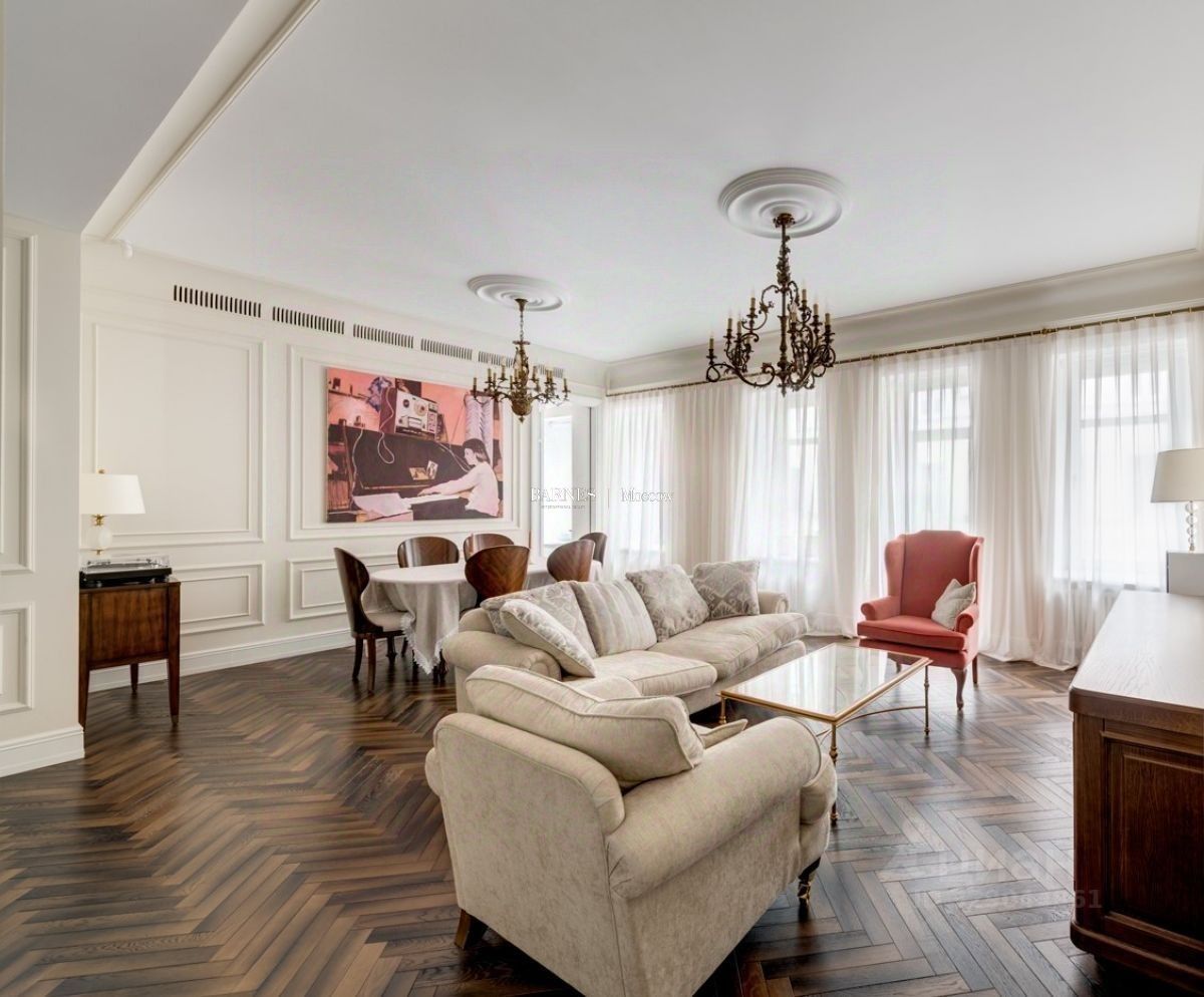 Изысканная и просторная 3-комнатная квартира площадью 128 кв.м. на 2 этаже в легендарном комплексе зданий, известном как "Волоцкие дома", построенном по проекту знаменитого архитектора Э.Р. Нирнзее, в непосредственной близости от Патриарших прудов.