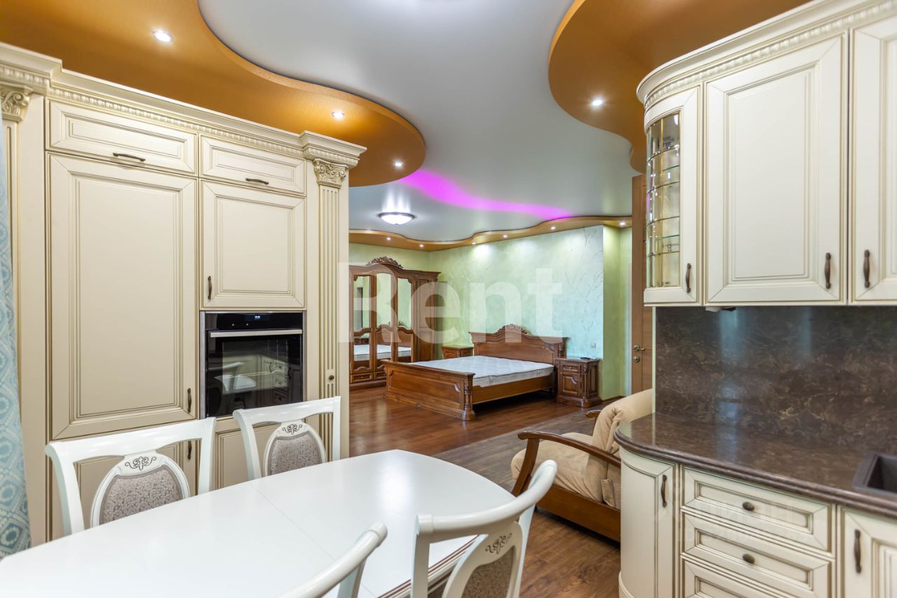 В отстроенном на берегу Раменки комплексе "Мосфильмовский" предлагается просторная студия. Помещение оригинальной формы обставлено качественной мебелью в классическом стиле, имеется вместительный шкаф. Кухня оснащена набором необходимой бытовой техники. Для дополнительного комфорта установлены джакузи, системы подогрева пола и кондиционирования.