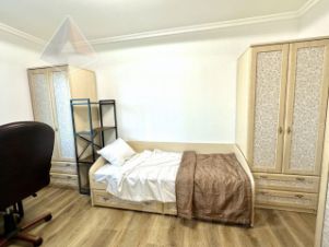 Сдается уютная трехкомнатная квартира после качественного ремонта. Планировка включает три изолированные комнаты, в которых размещены четыре полноценных спальных места с ортопедическими матрасами, а в одной из комнат установлен раскладной диван еще на два места. Две комнаты оборудованы просторными рабочими зонами и вместительными системами хранения, в одной из комнат предусмотрен балкон, а также есть отдельная гардеробная. Квартира полностью укомплектована мебелью и бытовой техникой, необходимыми для комфортного проживания. В каждом помещении установлен кондиционер, а совместный санузел оснащен ванной, гигиеническим душем и современными датчиками протечки воды.
