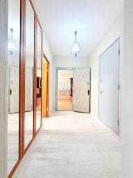 Предлагается светлая двухкомнатная квартира с хорошим ремонтом по ул Новотушинский проезд, дом 8 корп 1 в Москве. Квартира расположена на 9 этаже 17 этажного панельного дома. Удобная и функциональная планировка, общей площадью с учетом холодных помещений 53кв.м, жилая 34кв.м. Комнаты изолированные: 19-15кв.м. Просторная кухня 10кв.м со встроенным кухонным гарнитуром и бытовой техникой (электрической плитой, холодильник, микроволновка, чайник), обеденный стол со стульями. Из большой комнаты выход на балкон с прекрасным панорамным видом на парк и церковь. В зале стенка, раскладной диван, тумбочка. В спальне широкая двуспальная кровать с матрасом, две прикроватные тумбочки, вместительный шкаф. Раздельный санузел в голубом цвете, установлена раковина с зеркалом, удобная ванная, стиральная машинка, счётчики учёта воды. Просторный коридор 8кв.м с зеркалом. В квартире выполнен ремонт из качественных строительных материалов: на полу- линолеум, деревянные межкомнатные двери. Просторный тамбур на 4 квартиры с металлической дверью. Чистая входная группа подъезда с двумя лифтами (пассажирский и грузовой). Зеленый обустроенный двор с детской и спортивной площадками, много наземных парковочных мест. Развитая инфраструктура района. В пешей доступности школы, детские сады, магазины, ТЦ, салоны красоты, мед клиники, рестораны. Недалеко от дома Ландшафтный парк с зонами отдыха, пруд с лодочной станцией. В 2 минутах пешком метро Волоколамская. Арендная плата плюс коммуналка. Сдается на длительный срок. Страховой депозит 100%, комиссия агента 80%.
