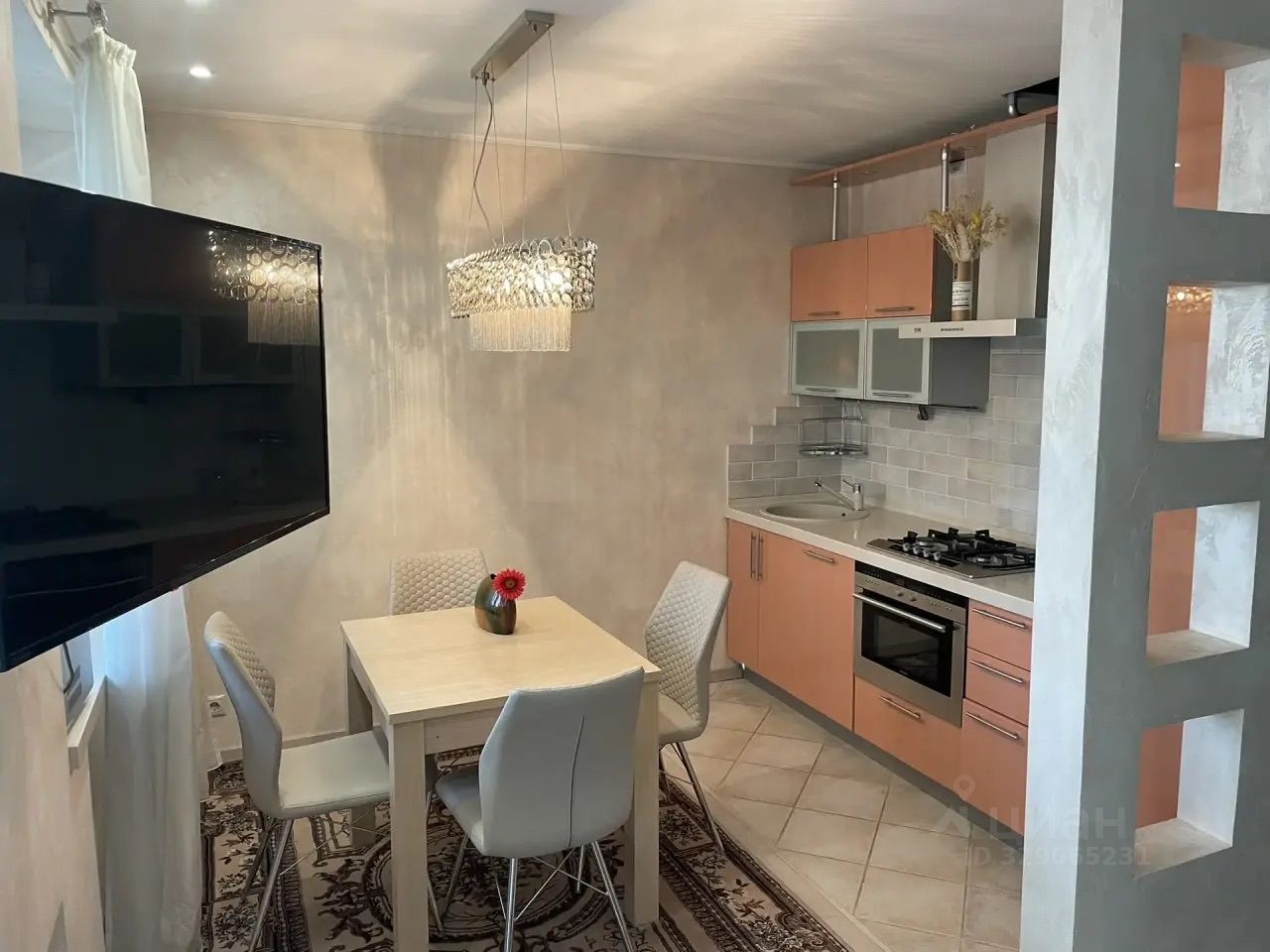 Интерьер выполнен по дизайнерскому проекту, в квартире есть всё необходимое для комфортного проживания. Пространство организовано очень эргономично: мебель на кухне и в комнате подобрана с умом, чтобы использовать каждый метр с максимальной пользой. Встроенная техника включает кондиционер, холодильник, посудомоечную машину, телевизор и стиральную машину. В совмещённом санузле установлена душевая кабина.