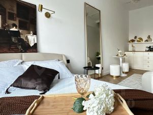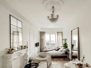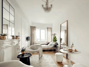 Эта небольшая студия, сделанная в стиле современной классики, точно не оставит равнодушным вашего внутреннего эстета.