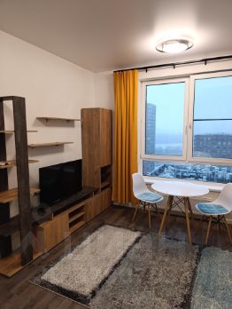 Сдаю на длительную аренду 1-комнатную квартиру 40,0 кв. м. (жилая 10,5 кв.м., кухня 19,7 кв.м.) на 18 этаже (из 24). Собственник, без агентства (услуги прошу не предлагать) и дополнительных комиссий. В квартире установлена техника: