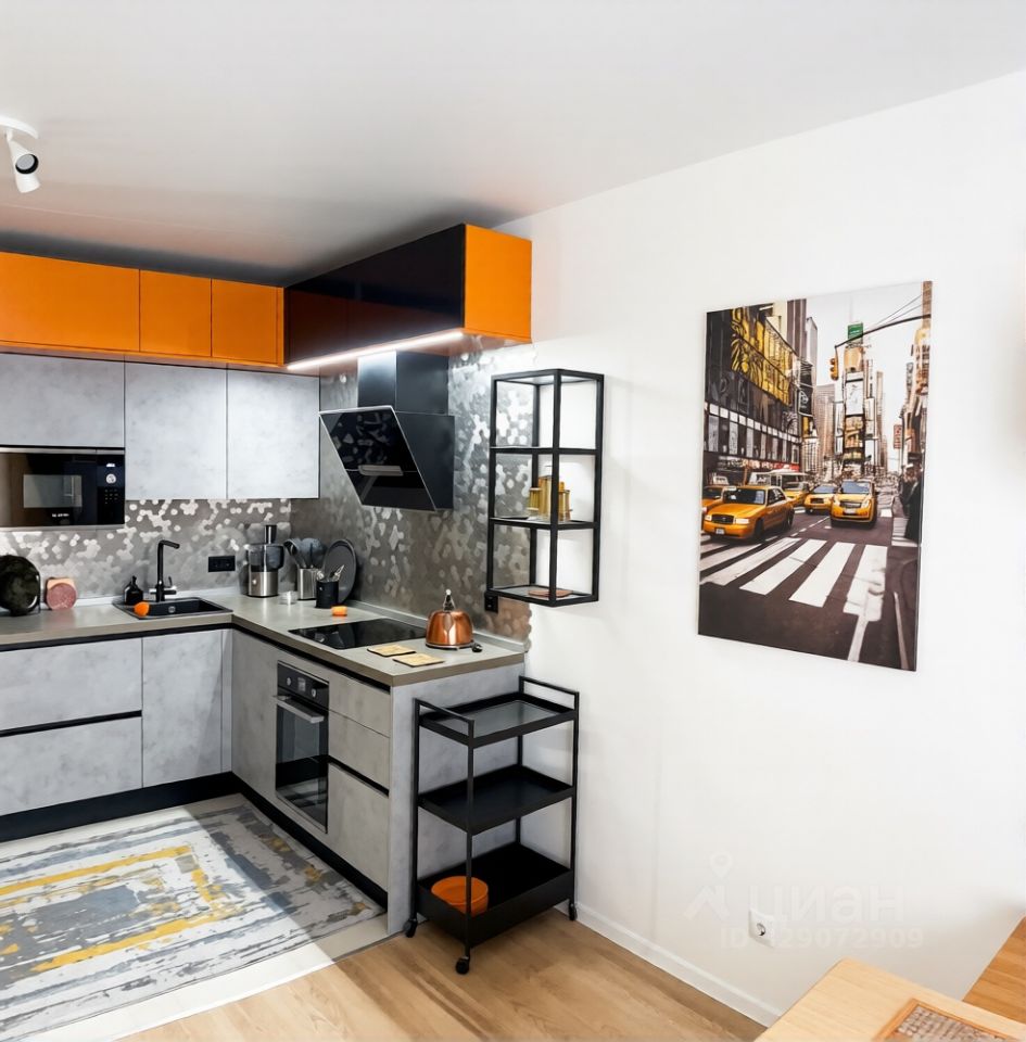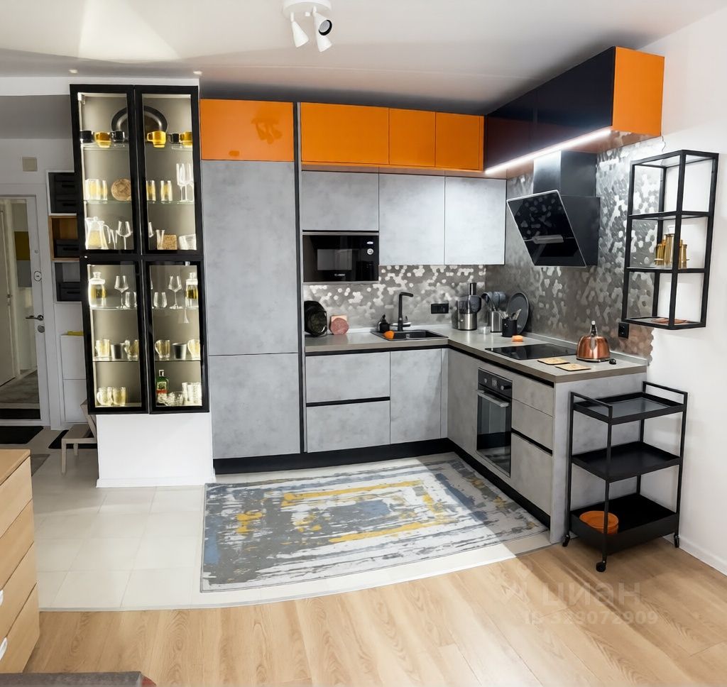 Просторная кухня-гостиная 18 метров и уютная спальня 12 метров. Кухня оборудована качественной дорогой техникой: встроенный холодильник, есть духовой шкаф, посудомоечная машина, два кондиционера, много мест для хранения.