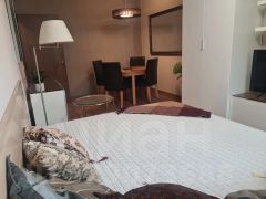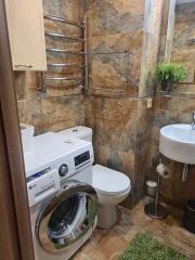 В квартире выполнен дизайнерский ремонт. Есть вся необходимая мебель как на кухне, так и в комнате. Для вашего комфорта установлена современная техника: кондиционер, холодильник, новая посудомоечная машина, новая стиральная машина, телевизор с функцией Smart TV (умный телевизор). Санузел совмещенный, оборудован ванной. Окна выходят во двор, поэтому в квартире всегда тихо и спокойно.