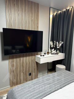 Квартира полностью меблирована, имеется вся необходимая техника для комфортного проживания. Установлена система кондиционирования в спальне и гостиной.