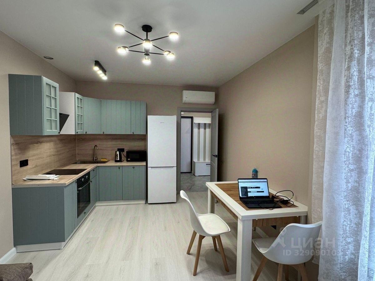 Сдается полностью обустроенная евродвушка в ЖК Лучи. Тут кухня-гостиная 16,6 кв.м, есть рабочая зона и место для отдыха.