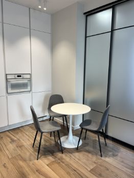 Кухня оборудована современной техникой и обеденной зоной. Две отдельные спальни , что обеспечивает уют и приватность. Ванная комната совмещенная, оформлена в стильном дизайне.