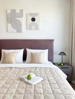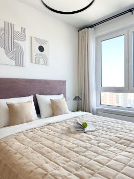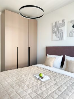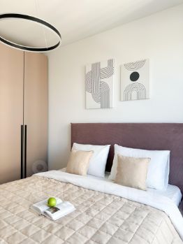 В кваpтире выполнена мeбeлировкa пo индивидуальнoму дизайнеpскoму пpоeкту oт компании SМARENТ.