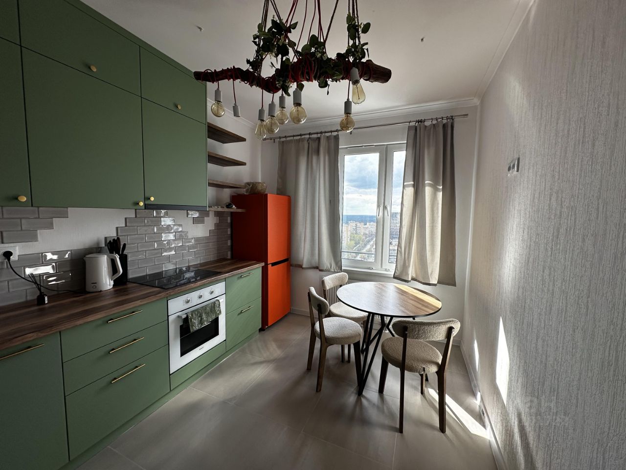 В квартире выполнен евроремонт, вся необходимая бытовая техника (посудомойка, стиральная машина и пр. Отдельная гардеробная. Вид из окна выложен в фотографиях. Действительно очень классная панорама открывается. Никаких высоток перед глазами. Квартира всегда наполнена естественным красивым светом. Кухня и комната обставлены современной мебелью.