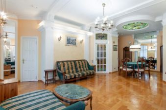Сдается просторная четырехкомнатная квартира в историческом центре Москвы, всего в 3 минутах пешком от метро Кропоткинская. Общая площадь квартиры составляет 99 кв. м, жилая площадь — 60 кв. м, а кухня — 10 кв. м. Квартира расположена на 3 этаже 5-этажного кирпичного дома 1910 года постройки. Потолки высотой 3.7 метра создают ощущение простора и света.