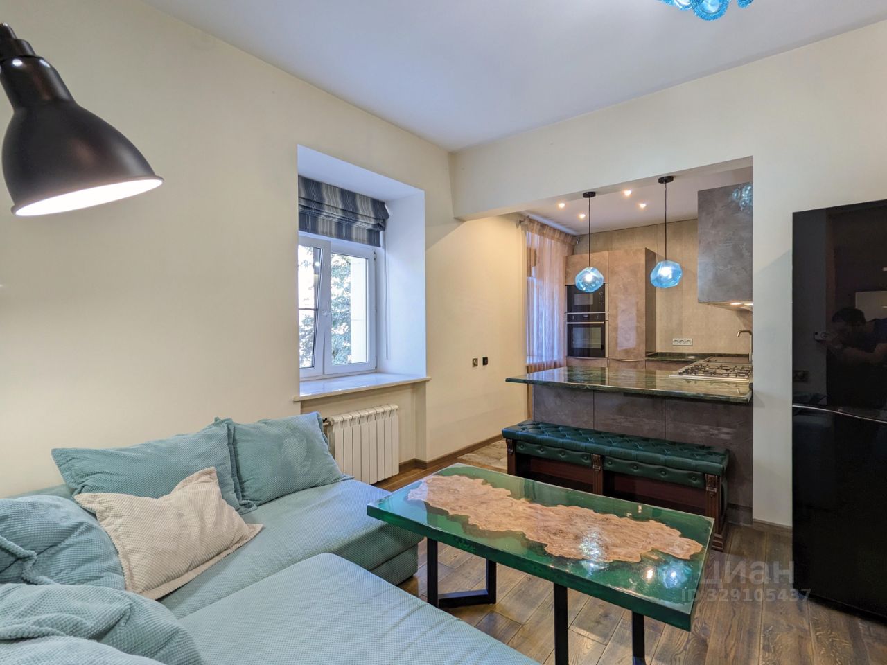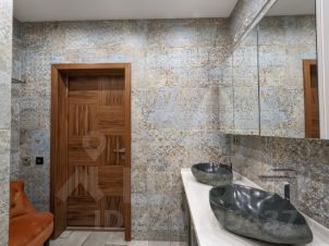 В квартире сделан дизайнерский ремонт, поэтому здесь приятно и комфортно жить. В комнатах и на кухне есть вся необходимая мебель. Из техники: холодильник, посудомоечная машина и стиральная машина. В ванной комнате установлена ванна. Санузел совмещенный, что удобно для большой семьи.