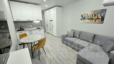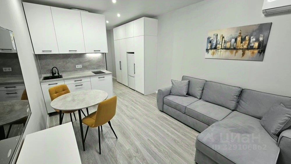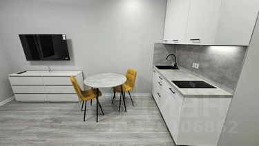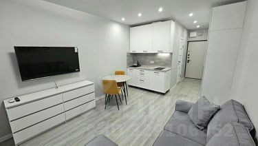 В квартире сделан современный евроремонт. Пространство студии продумано до мелочей: здесь есть всё необходимое для комфортного проживания. В комнате и на кухне находится мебель, установлена вся необходимая техника: кондиционер, холодильник, индукционная плита, микроволновая печь, вытяжка, стиральная машина и телевизор со смарт ТВ. Ванная комната оборудована душевой кабиной, что особенно удобно для быстрого утреннего душа.