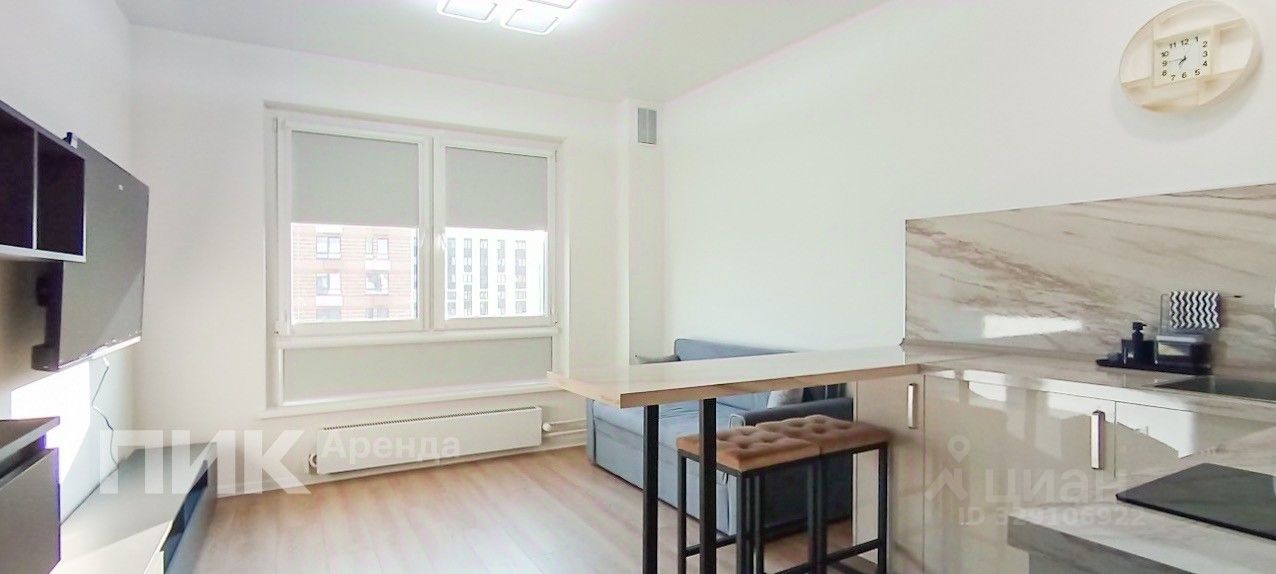 Сдаётся светлая квартира-студия с совмещённым санузлом и евроремонтом в ЖК Кронштадтский 14, без депозита!