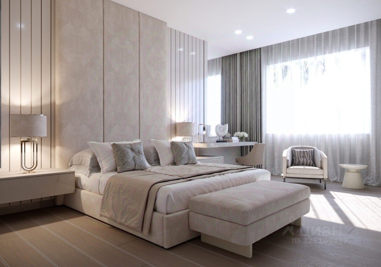 Главная архитектурная деталь гостиной — камин с отделкой из натурального камня, задающий тон всей атмосфере. Встроенные гардеробные системы Poliform и кухня с техникой Gaggenau формируют безупречный уровень бытового комфорта. Система "умный дом" управляет климатом и сценариями освещения.