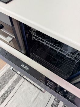Входя в квартиру, Вы попадаете в кухню-гостиную. Кухня оборудована всей необходимой бытовой техникой. Есть посудомоечная машина на 60см. Отдельно стоящий большой холодильник. Плита на 4 конфорки, духовка.