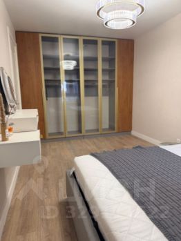В спальне установлен шкаф, выполнен на заказ, кровать с подъемным механизмом. Достаточно мест хранения.