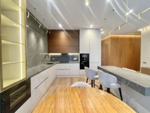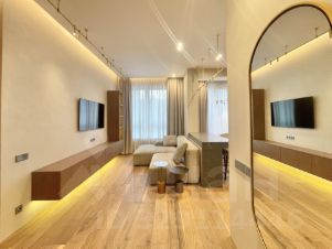 Функциональная планировка. 2 изолированные спальни, одна из них мастер-спальня со своим санузлом, 2 гардеробные, просторная кухня - гостиная с обеденным столом и барной стойкой, 2 санузла. Управление светом по зонам.